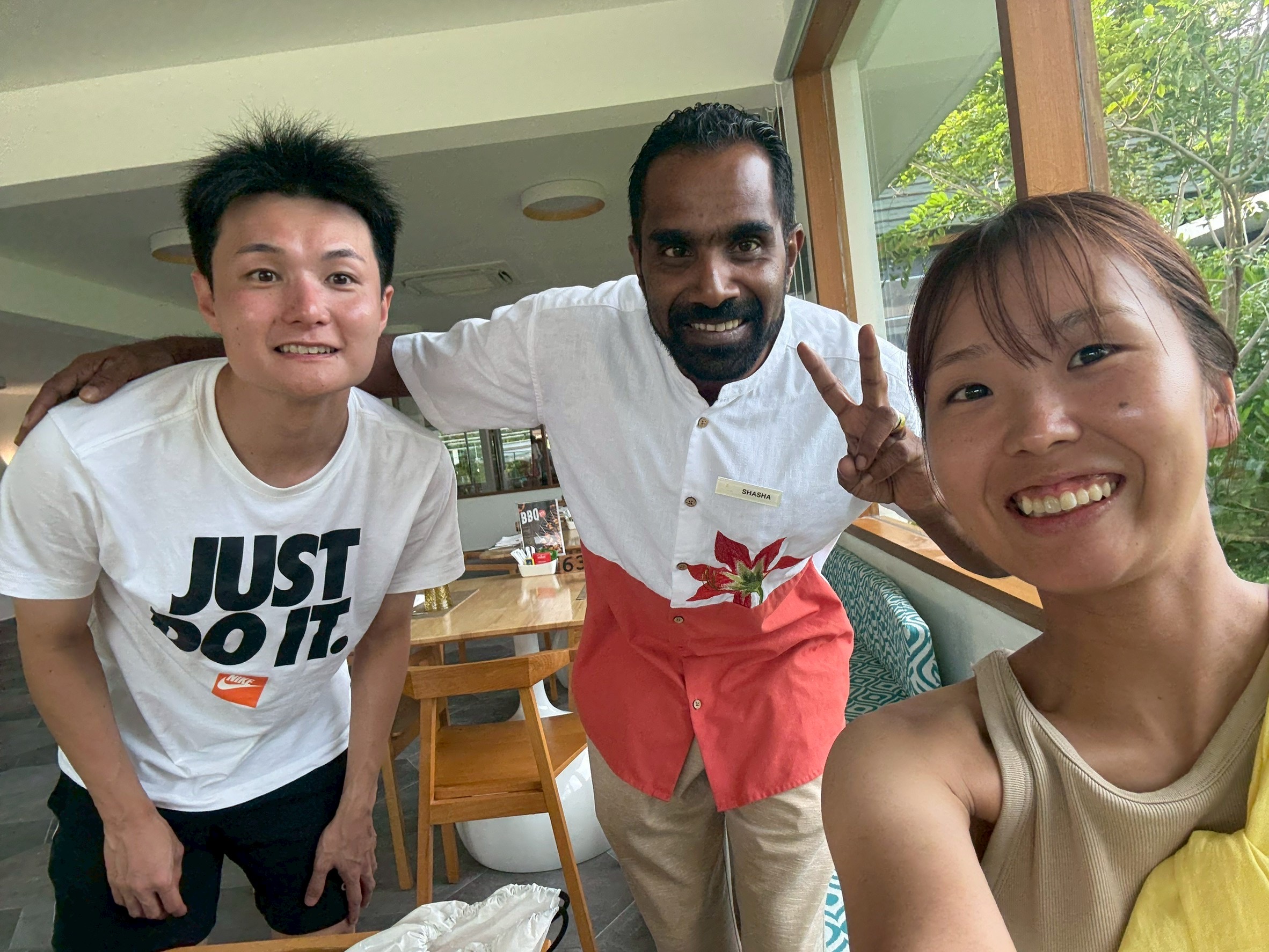 - リゾートの案内人の方との写真です。ご飯やイルカウォッチングの予約などいろいろお世話になりました。