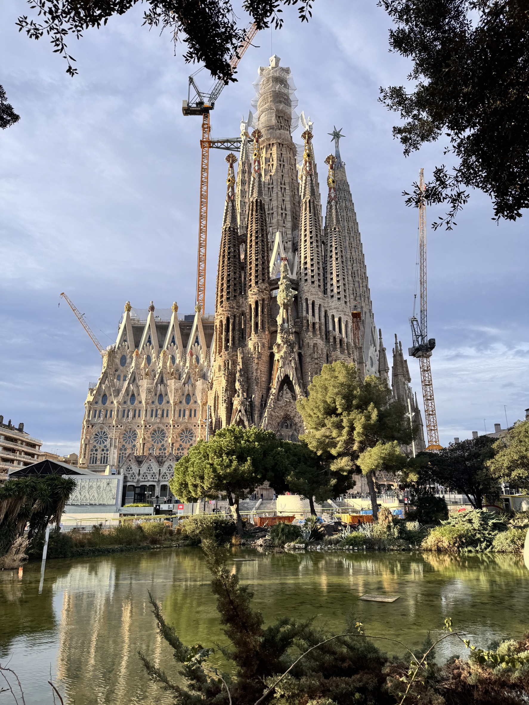 - スペインではサグラダファミリアに行きました。水面に反射しているのがとても綺麗です。夜になるとまた違った見え方をするみたいです!