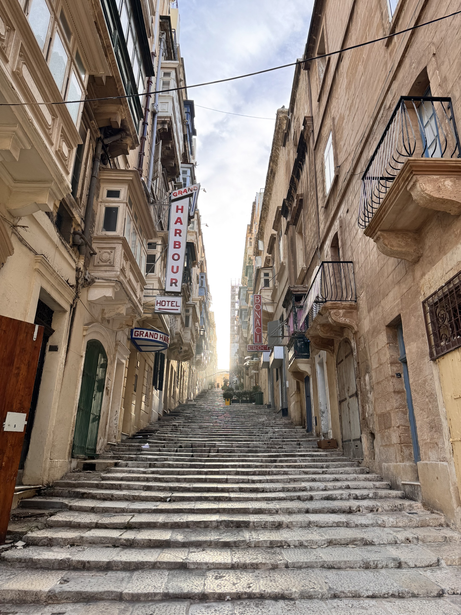 - マルタの首都ヴァレッタの街並みです!緩やかな階段が多いのが特徴だと感じました!夜になると階段でディナーを食べている人がいて面白かったです!