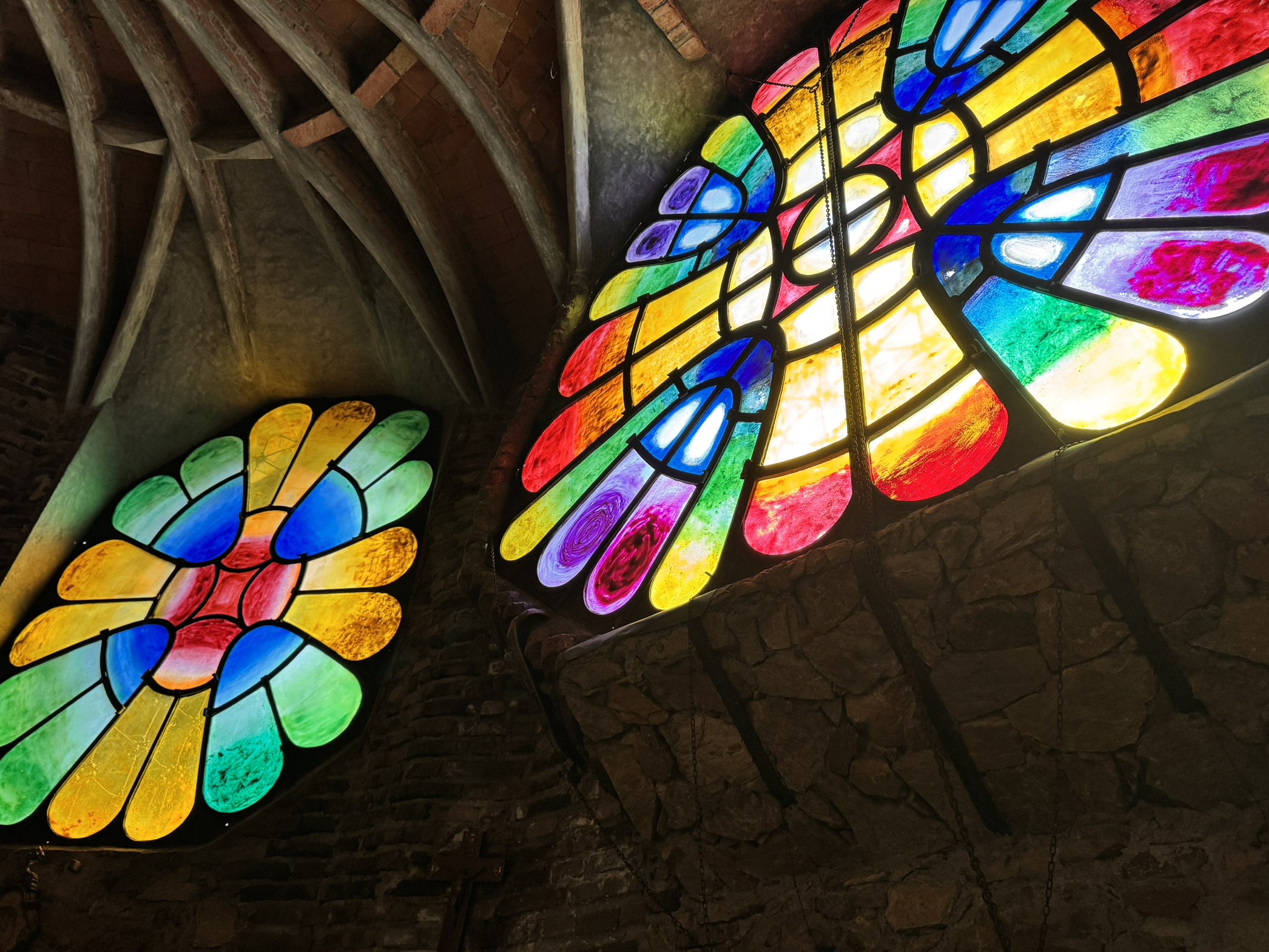 - グエル教会にもいきました!ステンドガラスがとても綺麗でした!開店の10時ぴったり行ったため、教会の中は私たちだけで見ることができて、貸切状態でした!